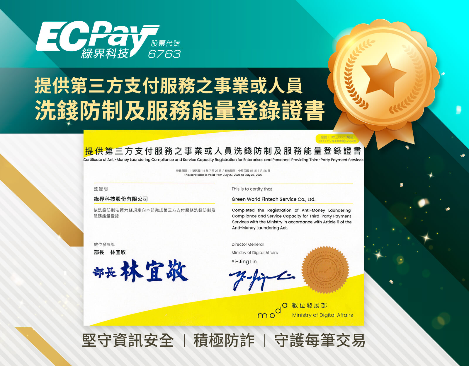 台灣首家通過第三方支付能量登錄,堅守資訊安全,積極防詐,守護每筆交易。