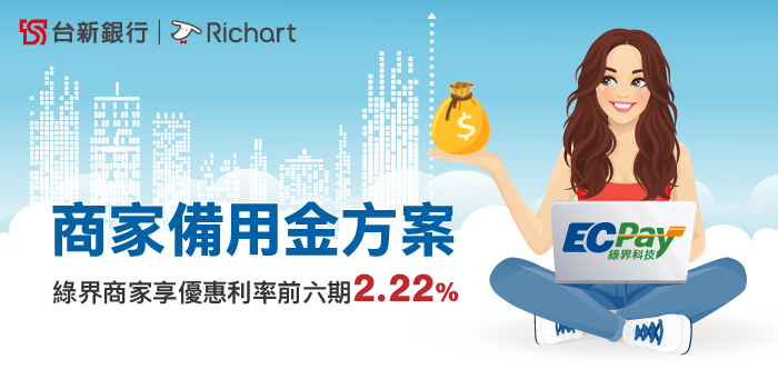 綠界科技 × 台新銀行|商家享專屬優惠利率前六期2.22% |